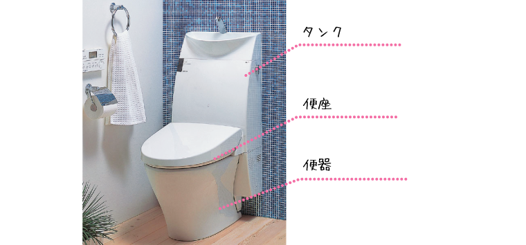 便器には、大きく分けてタンクレスタイプと、従来のように便器とタンクが一体になったタンク付きタイプがあります。