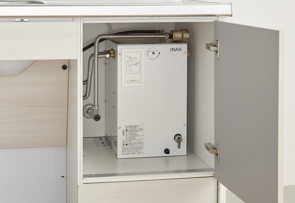 すぐにお湯が使える電気温水器を設置したり、寒い季節にうれしい足元温風機をオプションで追加することもできます。