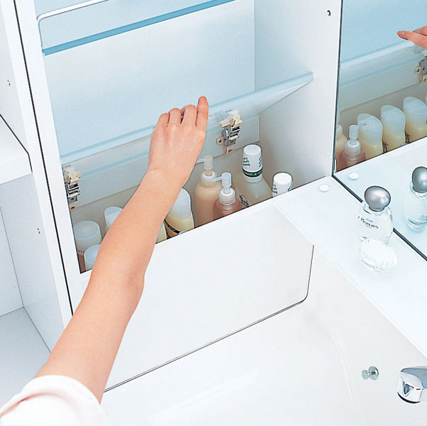 鏡裏収納は、歯ブラシや化粧品などの小物をすっきり片付けられるので、洗面まわりをきれいに保つことができます。