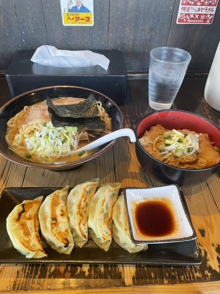 今回頼んだのは 醤油ラーメン(替え玉追加あり) 焼き餃子 トロ肉ごはん です!