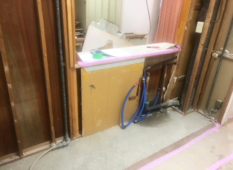 給水管も新しくハイブリットホースに変え、吊り戸を付けるために下地もしっかり入れております。