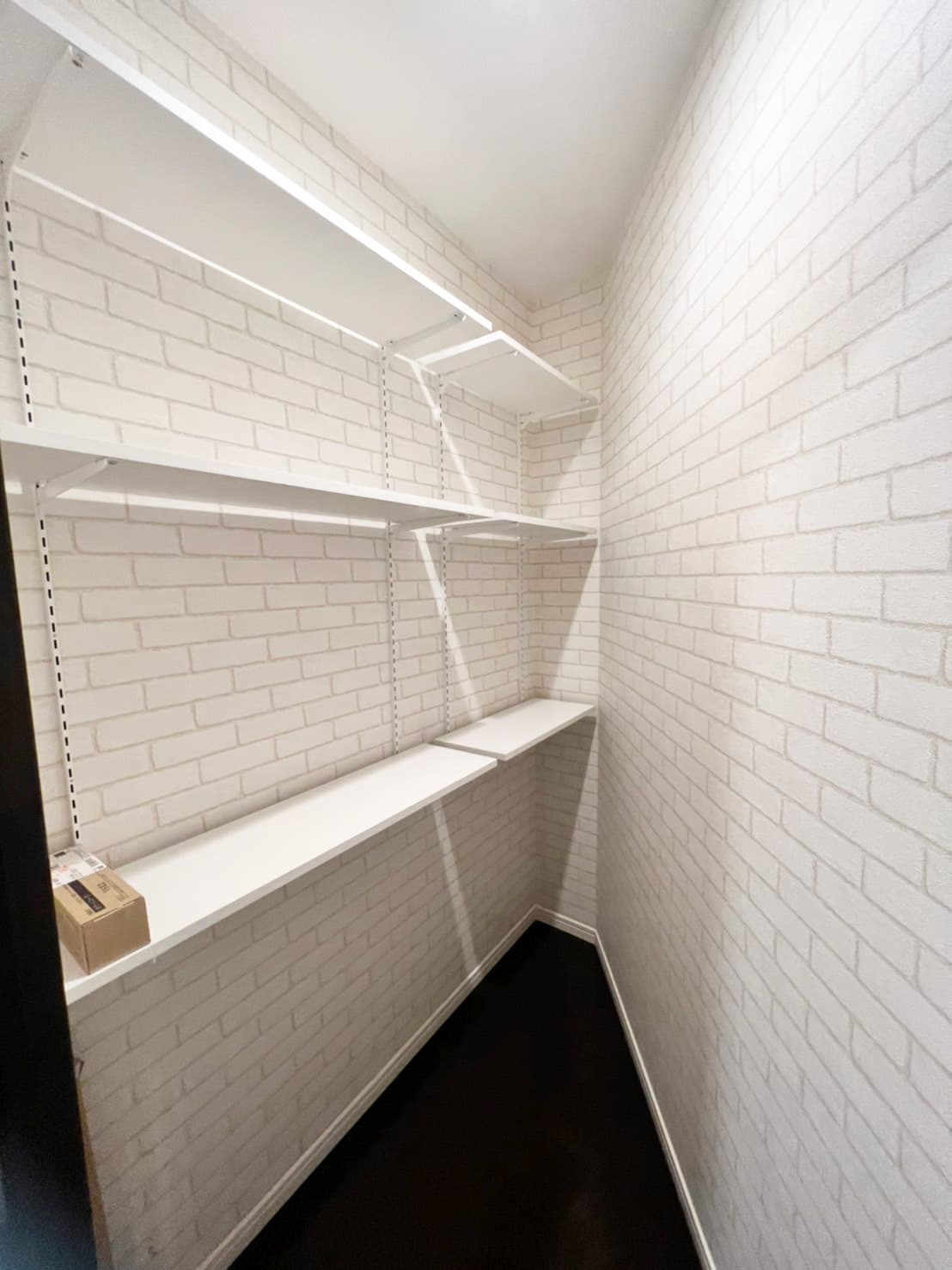 その他にも、物置スペースはあったのですが棚板が無かったので可動棚を付けたり、シューズクローゼットに汚れの目立たないクロスを貼ったりしました。