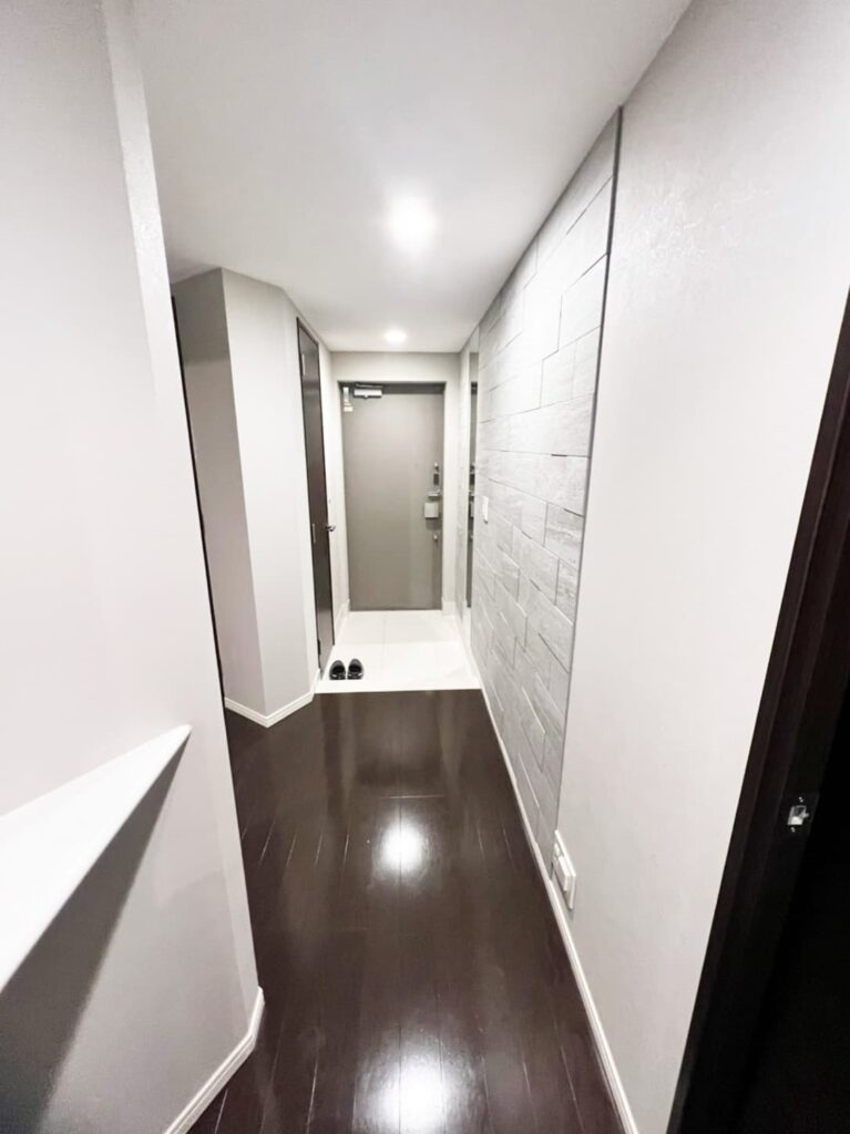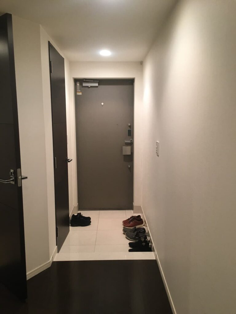 普通のマンションの玄関でしたが、エコカラットヴァルスロックとミラーを貼りカッコいい玄関になりましたね。