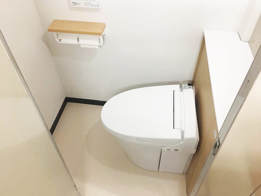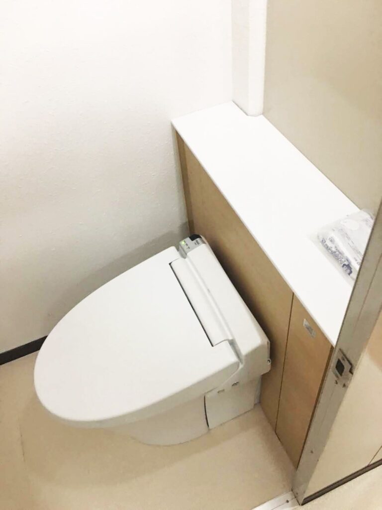 トイレはLIXILの「リフォレ」を採用しました。よく見ると、奥にコンクリートの柱が少し出ていたので現場加工して綺麗に仕上げる事ができました。