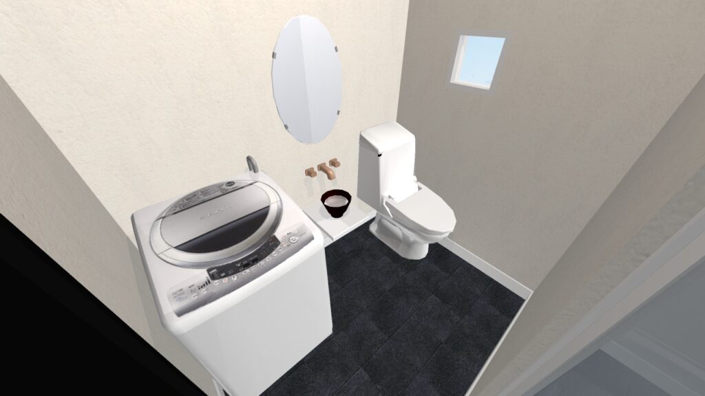 今回のこだわりはユニットバスで、もともと1.4m×1mのサイズが入っていましたが、より広くしたかったので、1.1m×1.6m(1116サイズ)のユニットバスを入れるよう設計しました。