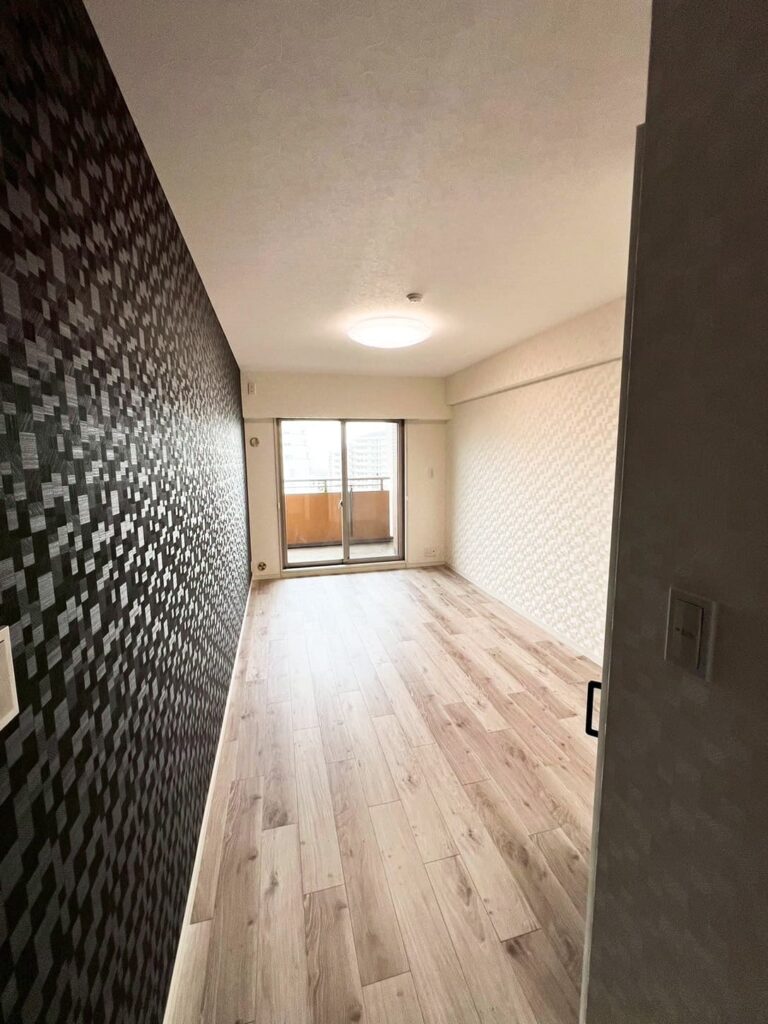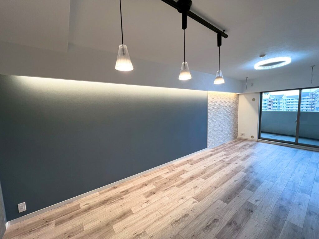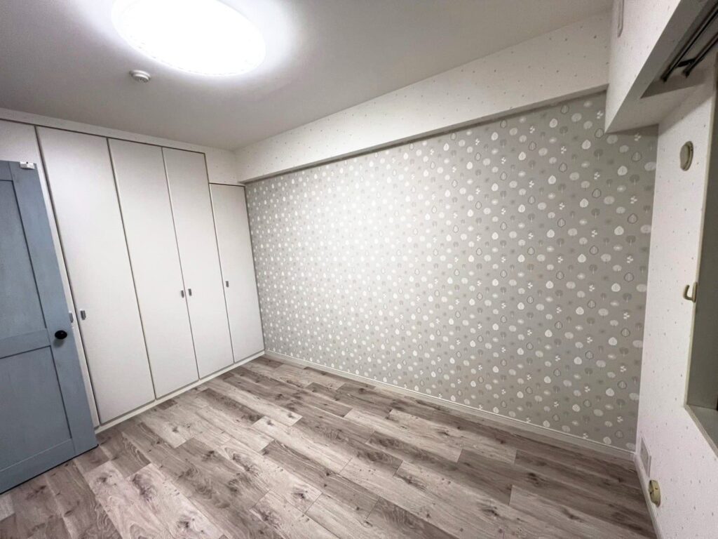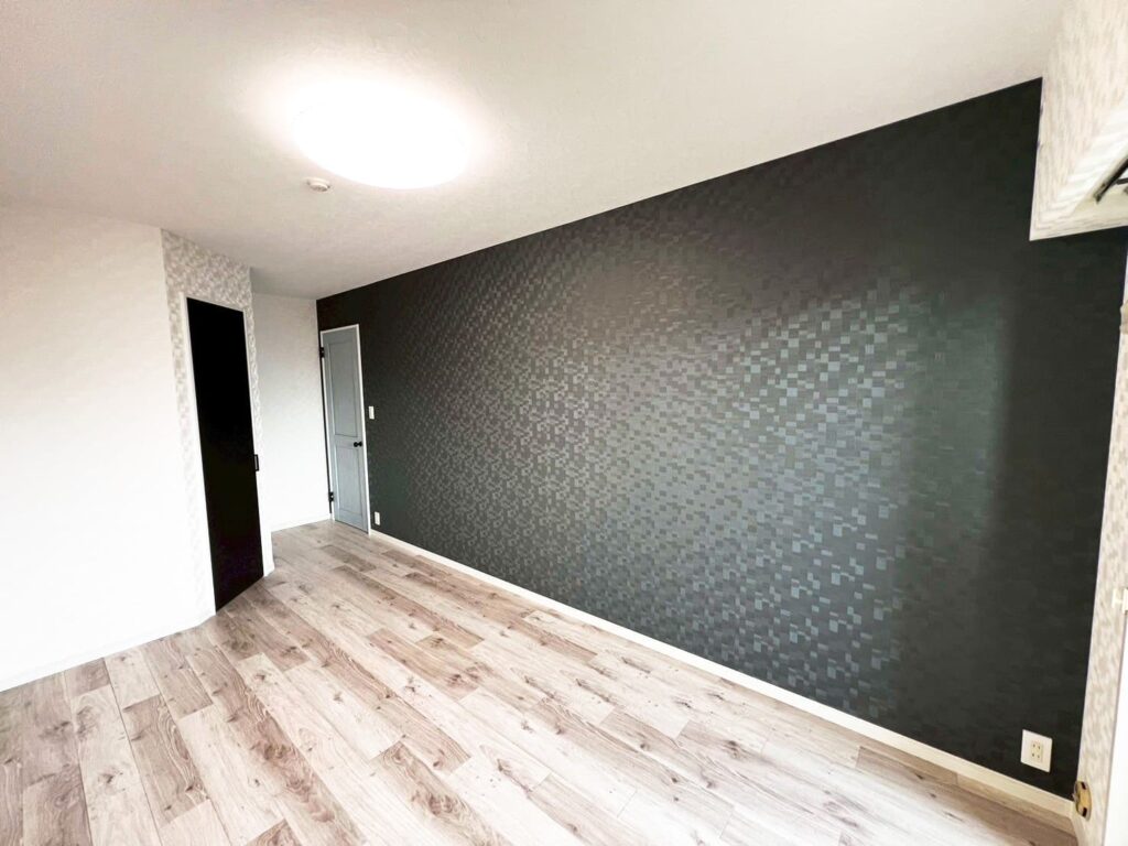 アクセントクロスとエコカラット「ヴィストNX」を貼りました。またシーリングライトも取り付けました。