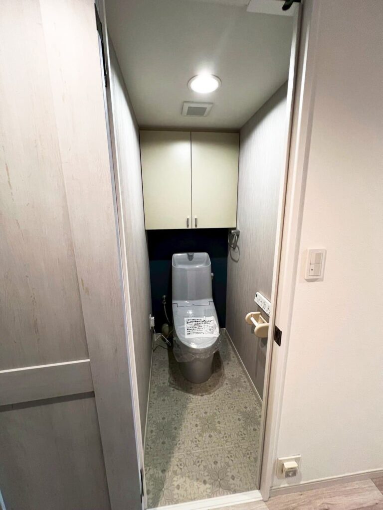 LIXILの「アメージュシャワートイレ」を採用しました。可愛らしいトイレ空間になりました。