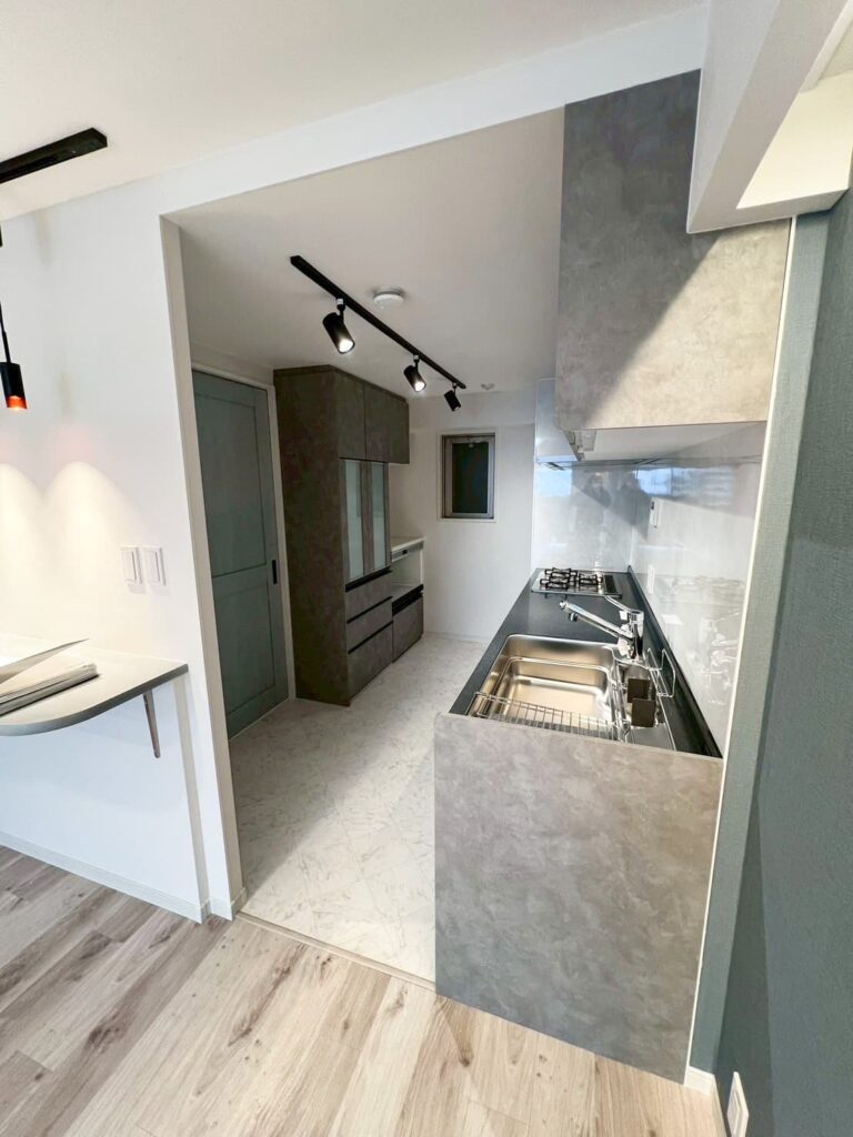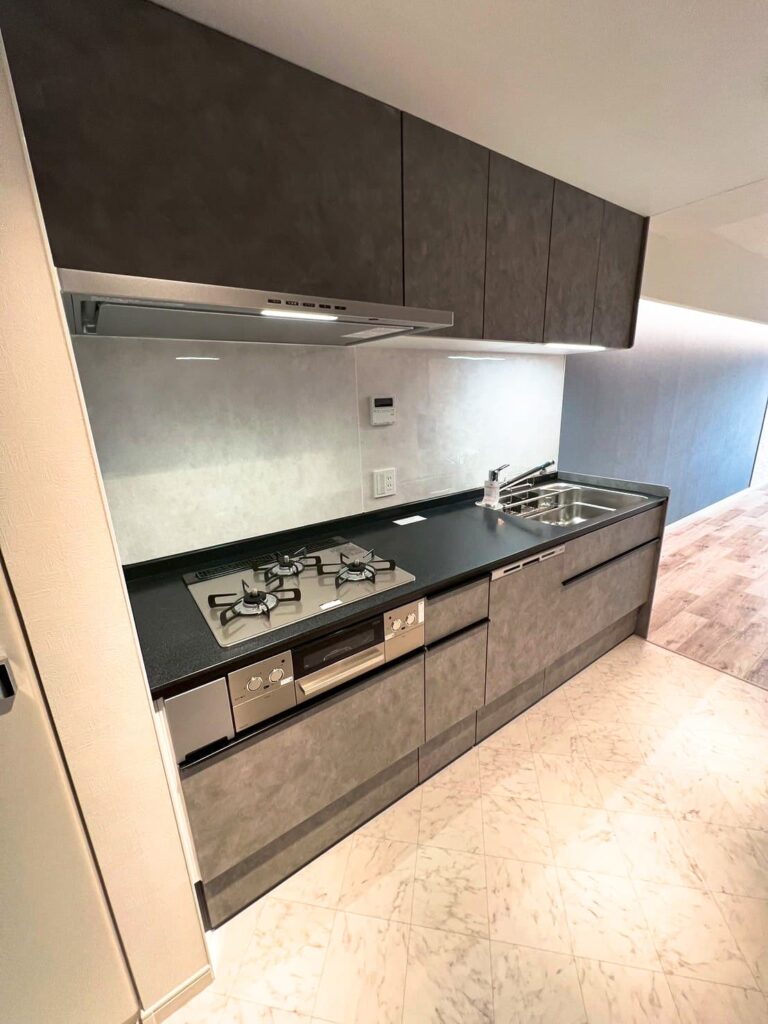 LIXILの「ノクト」を採用しました。壁付キッチンとなっています。