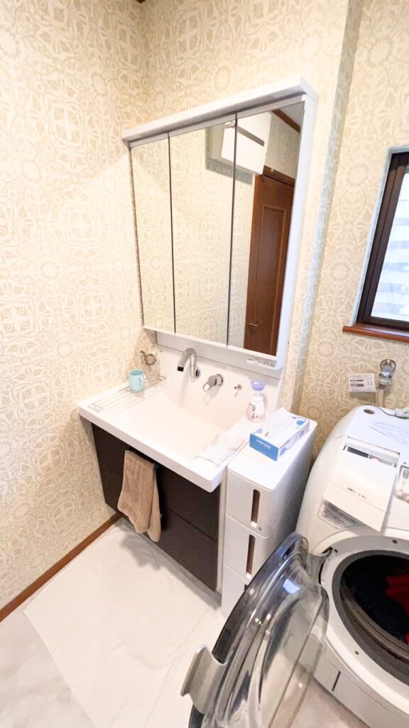LIXIL「プレアス」を採用しました。クロスはかなりこだわり、花柄のクロスを選びました。